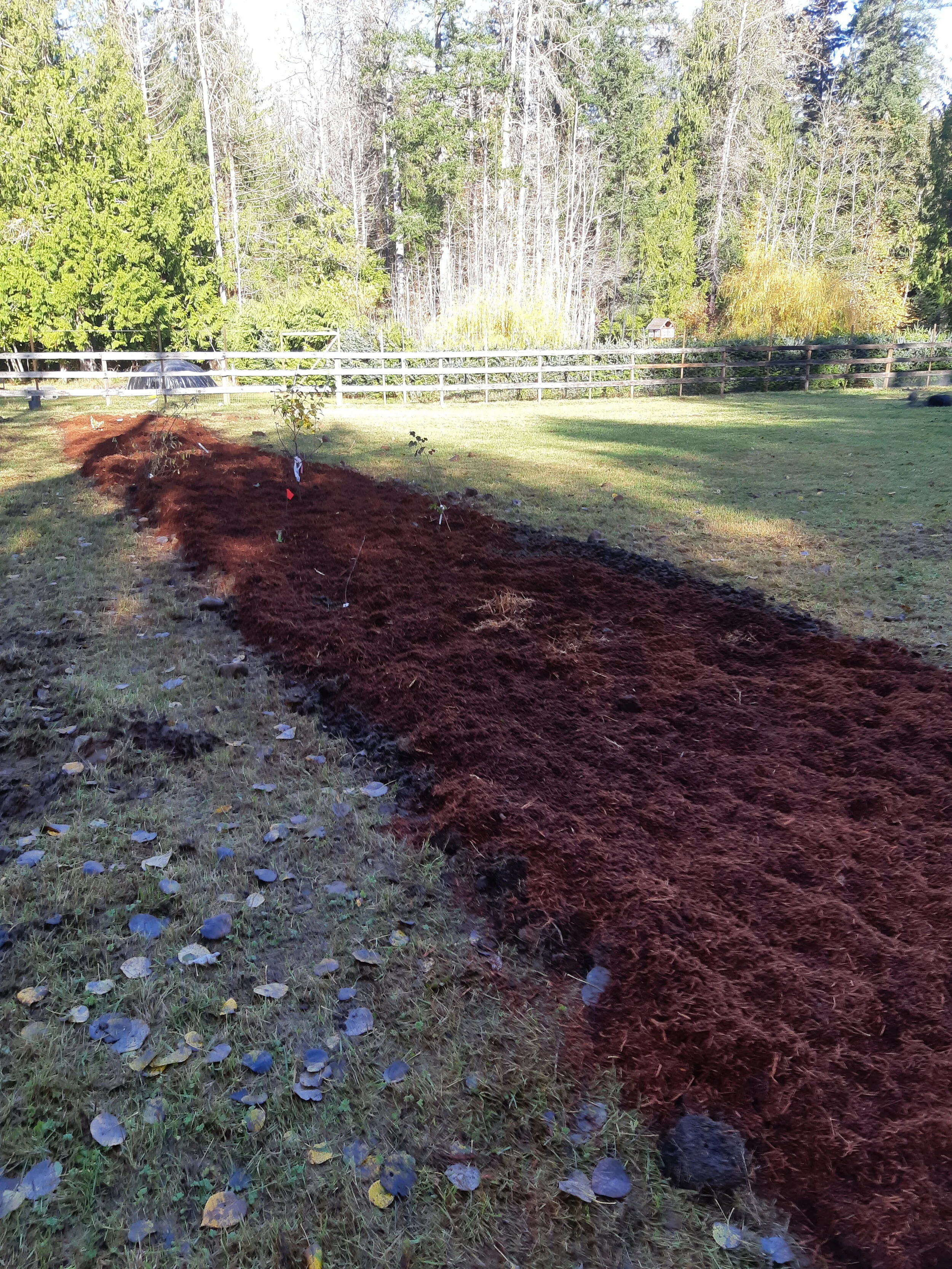 The West side bed. The two beds create a south facing U shaped food forest to capture the sun and create a microclimate in the middle of the U.