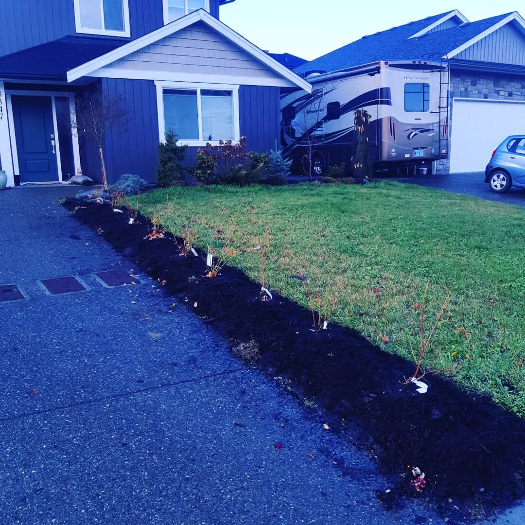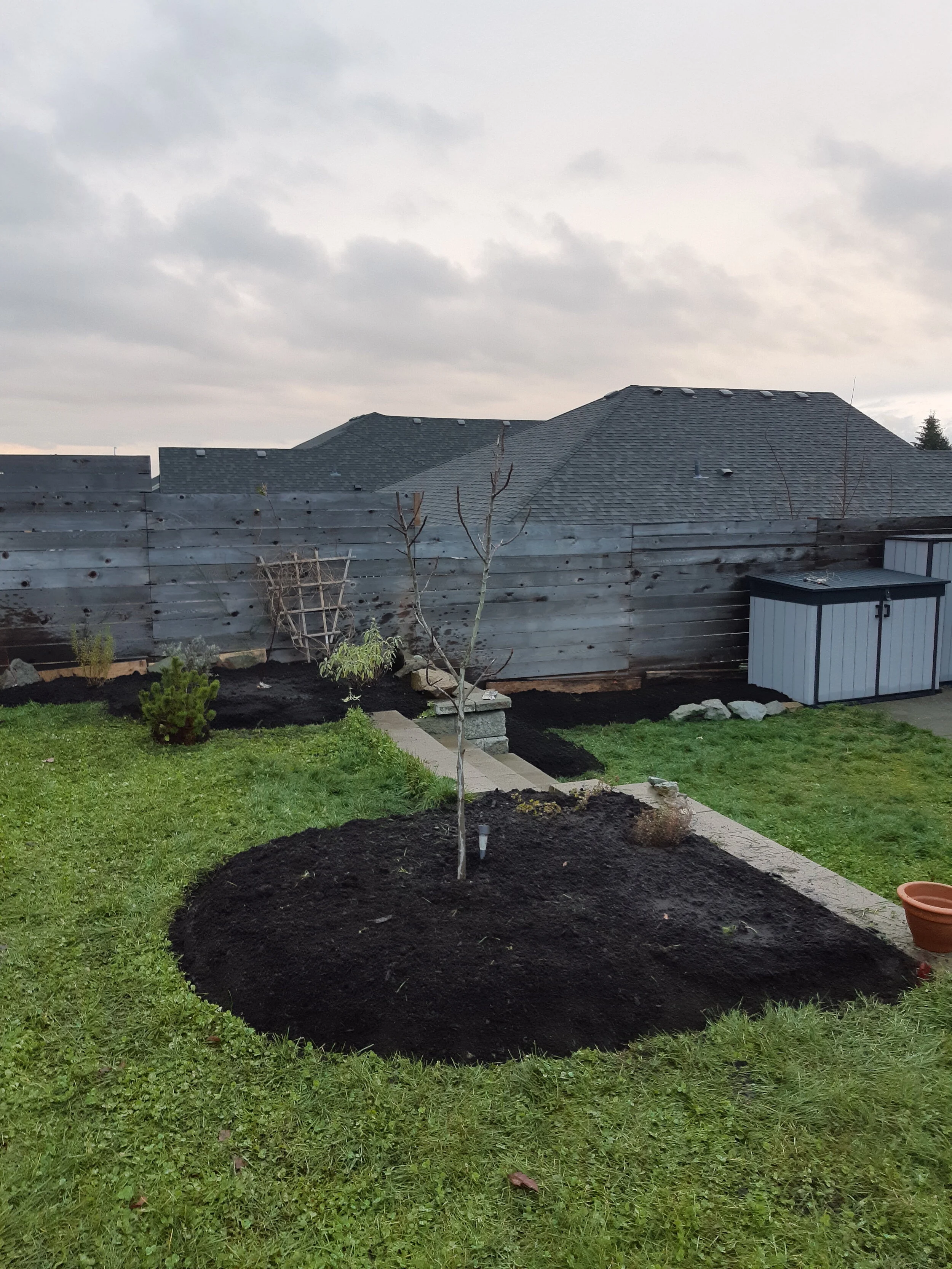 This customer had recently purchased this house with an existing ornamental garden. They wanted more edible plants while maintaining the aesthetics of a an ornamental garden. We decided on these curved beds to bring some natural shapes to this space. Once the beds were create we planted apple, pear, and plum trees and will be returning in the spring to add some fruit trees, berries, herbs and nutrient accumulating plants.